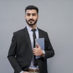 A man in a suit with arms crossed stands confidently.